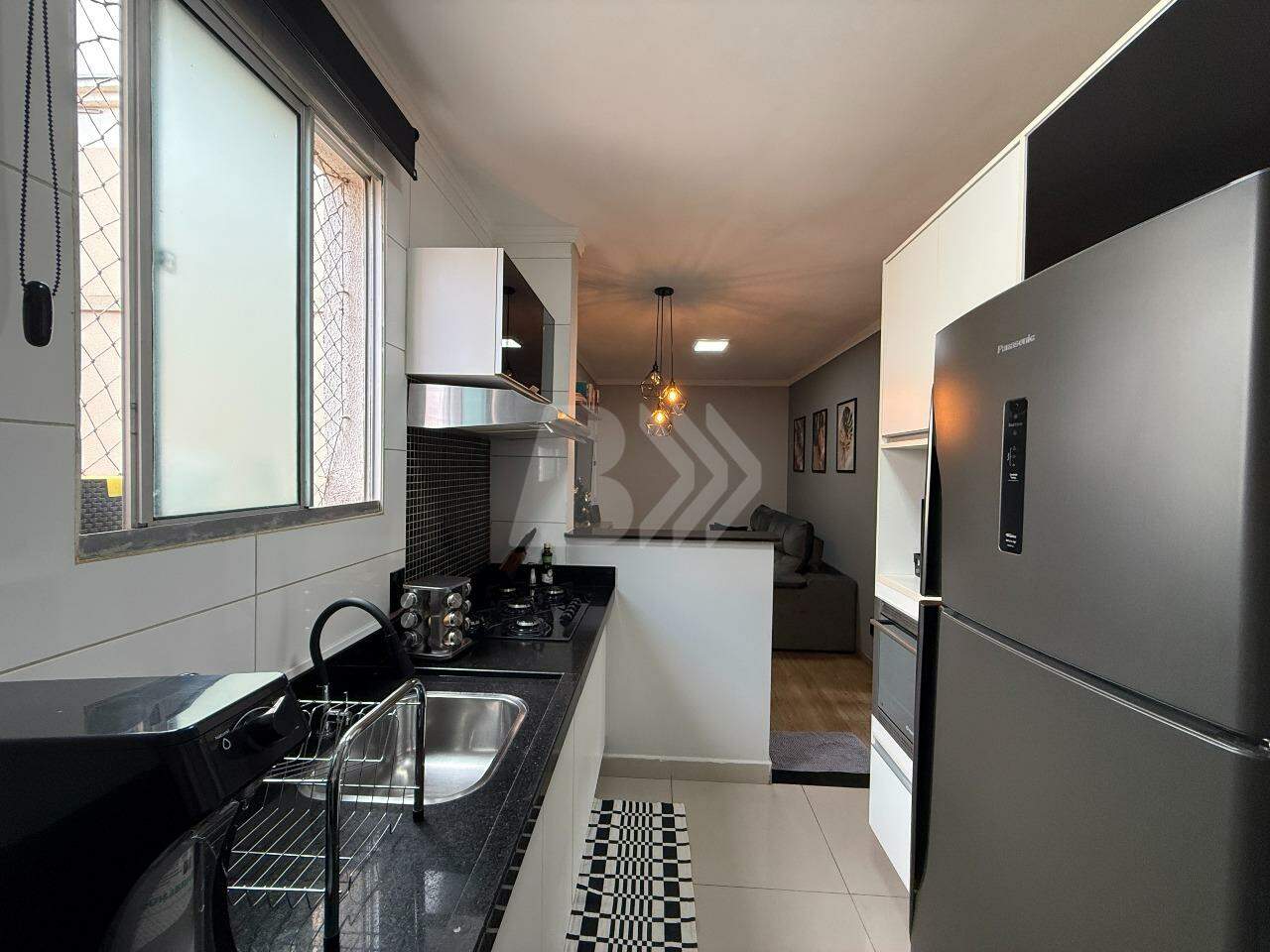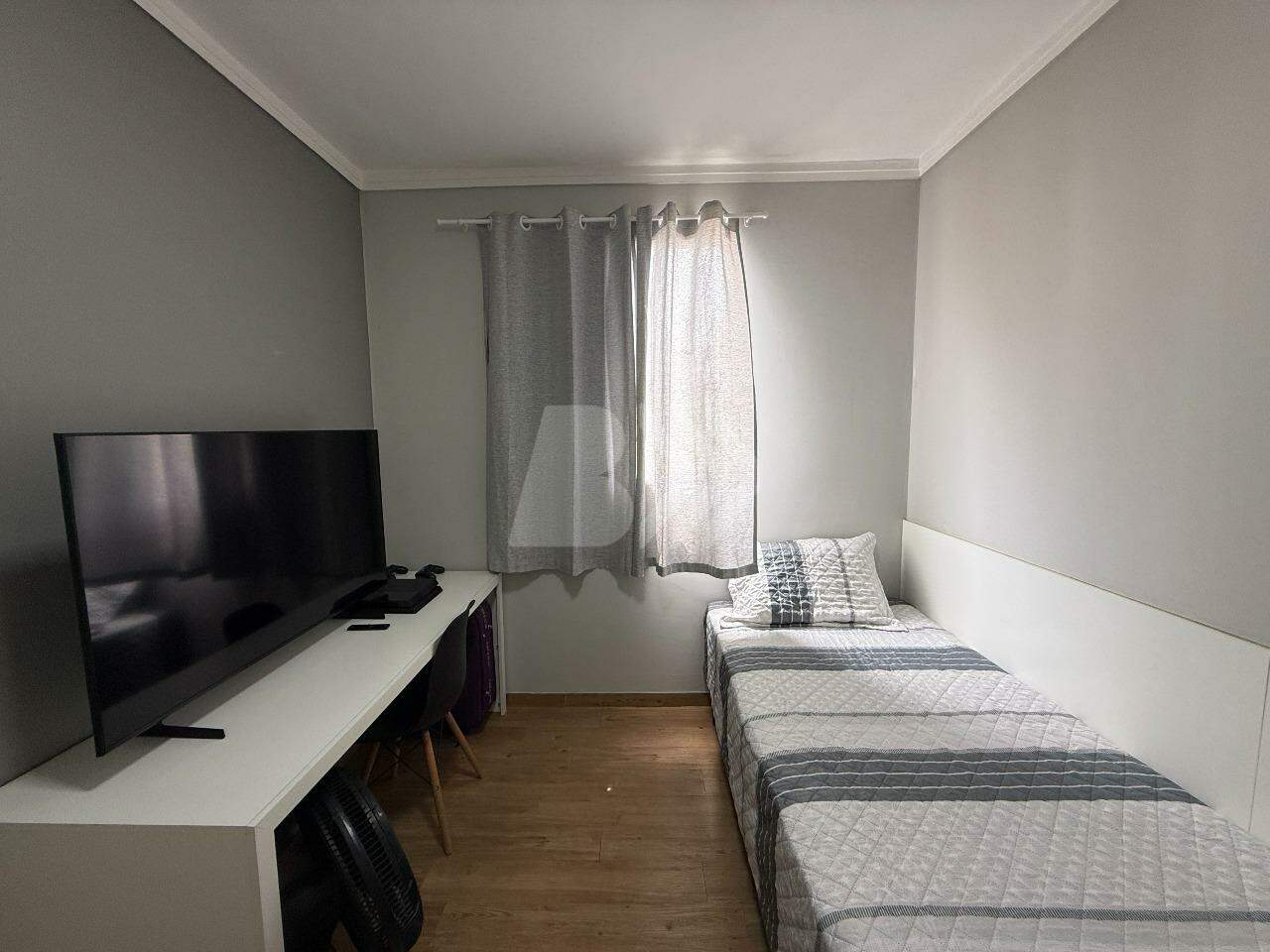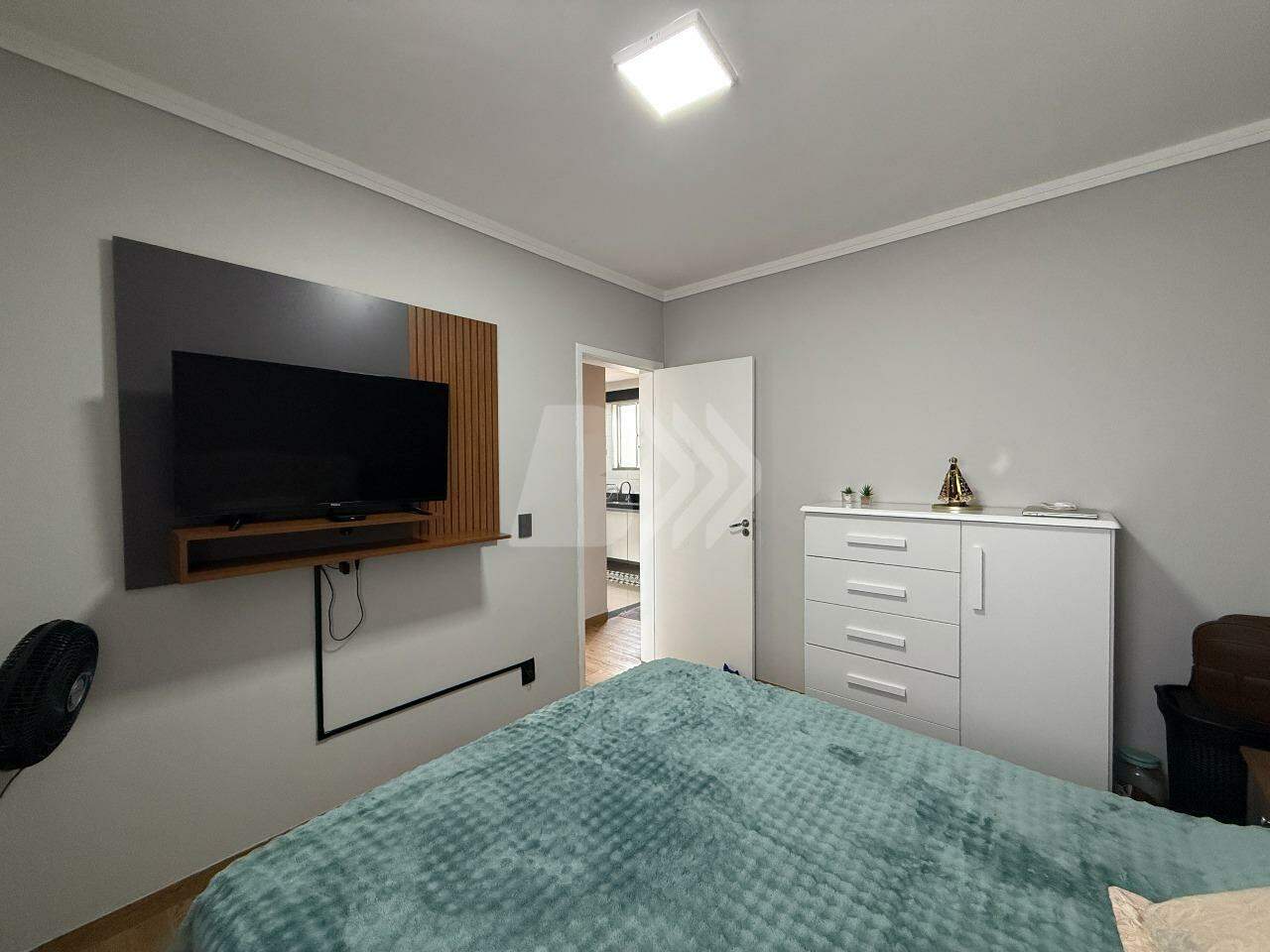 O imóvel conta com 2 dormitórios, sendo 1 com armário planejado, sala com painel de TV, lustre e persiana, cozinha com armários planejados e banheiro social com gabinete e box.