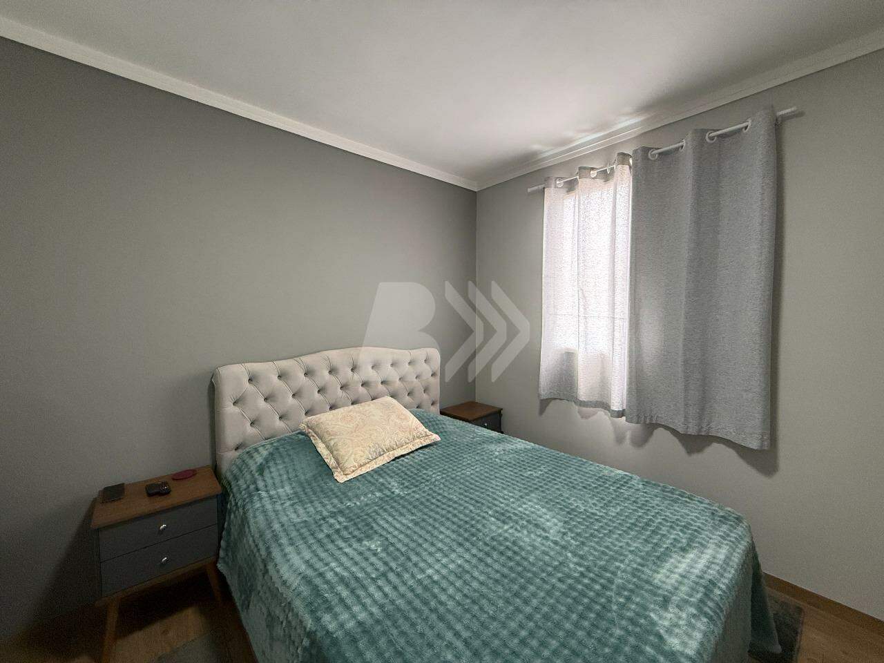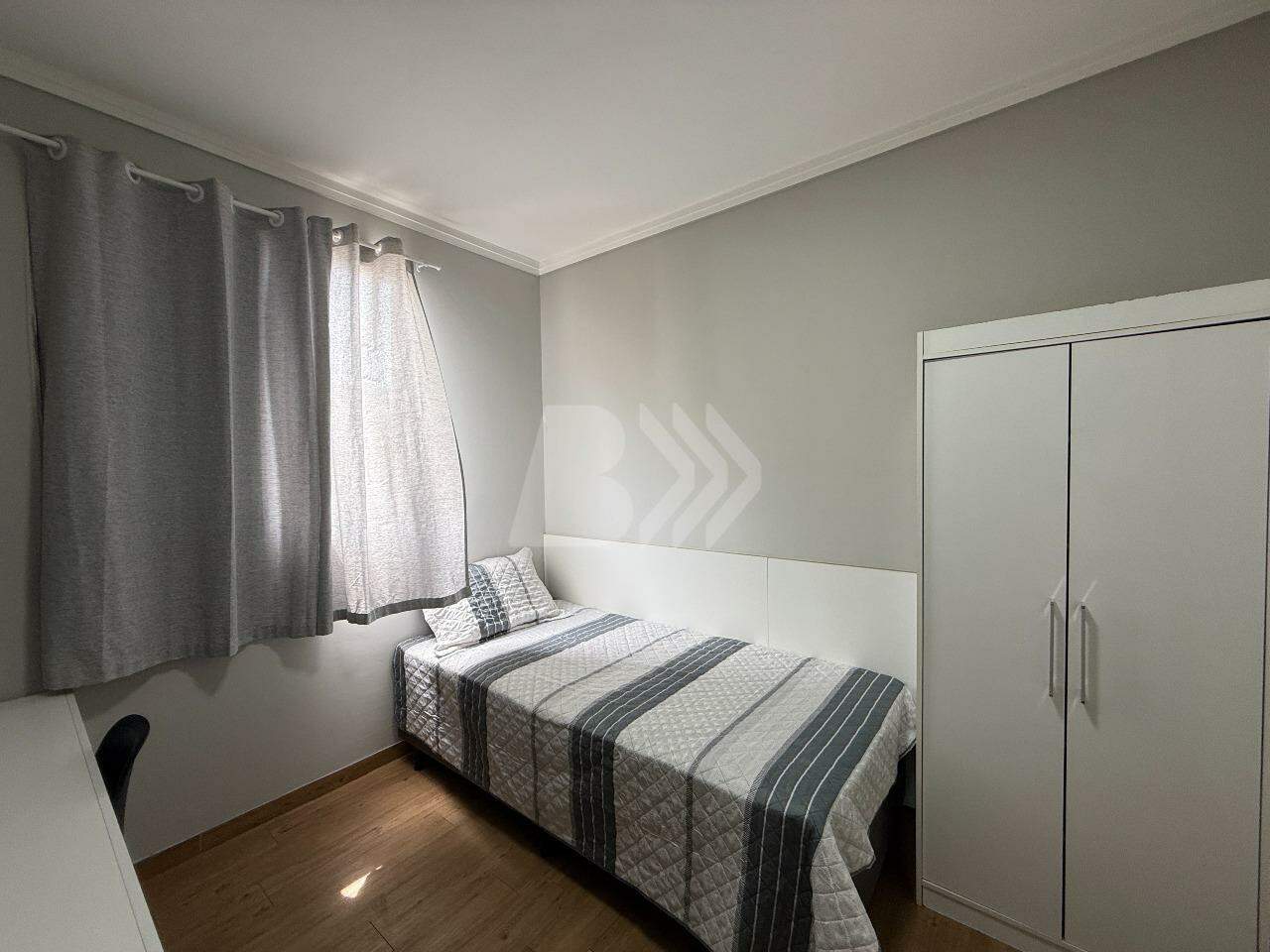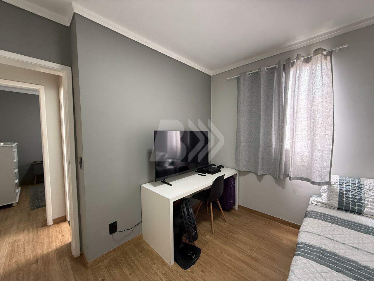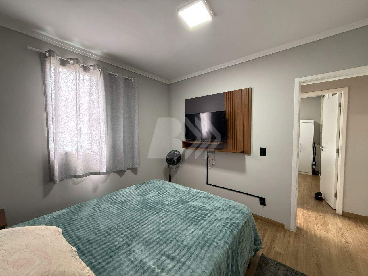 O imóvel conta com 2 dormitórios, sendo 1 com armário planejado, sala com painel de TV, lustre e persiana, cozinha com armários planejados e banheiro social com gabinete e box.