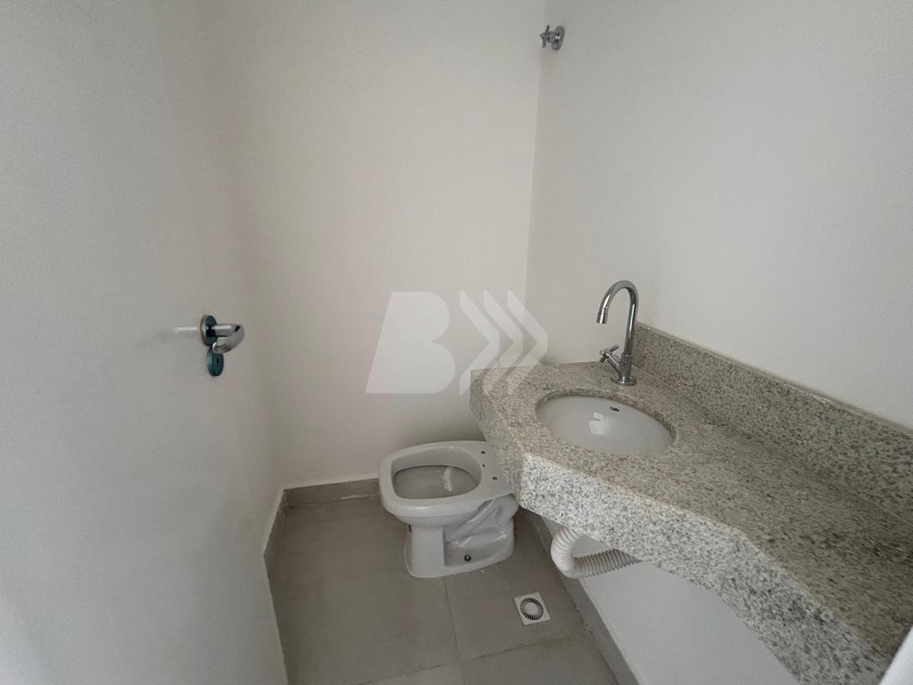 O imóvel conta com sala para 2 ambientes integrada à cozinha em conceito aberto com planejados, além de lavabo com armário.