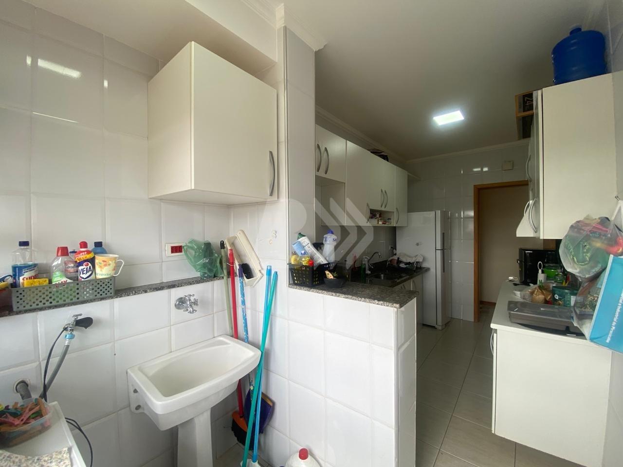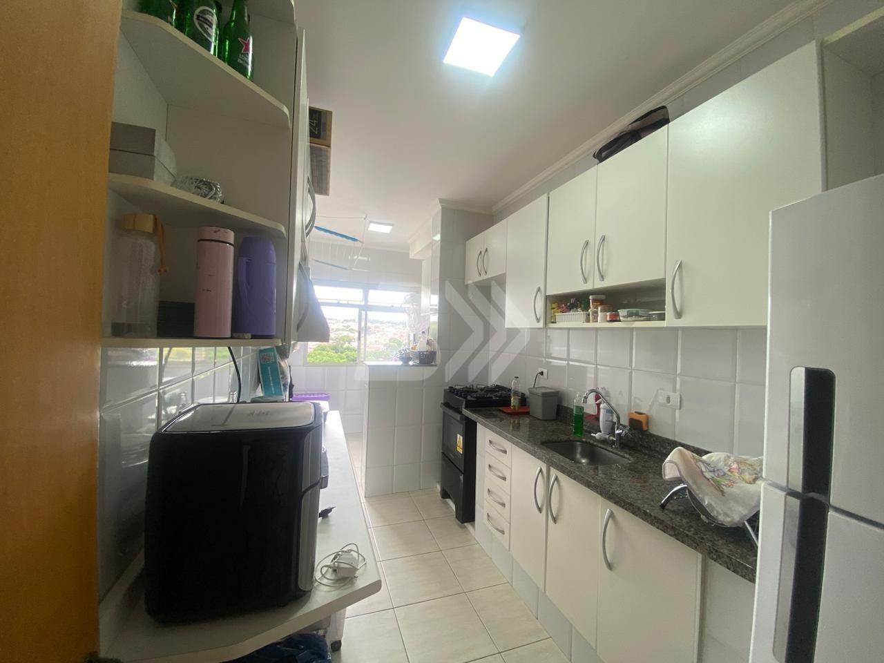 O imóvel conta com sala para 2 ambientes, com rack na sala, 2 quartos com armários, cozinha com armários e banheiro com armário e box e sacada.