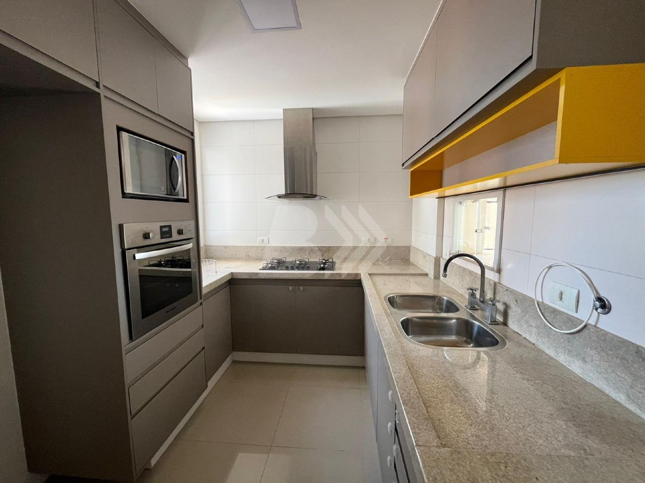 O imóvel conta com 131 m², distribuídos em: sala para 3 ambientes com ar-condicionado, lavabo, sacada gourmet com churrasqueira, cozinha planejada com cooktop, forno, micro-ondas e exaustor, além de área de serviço com planejados.