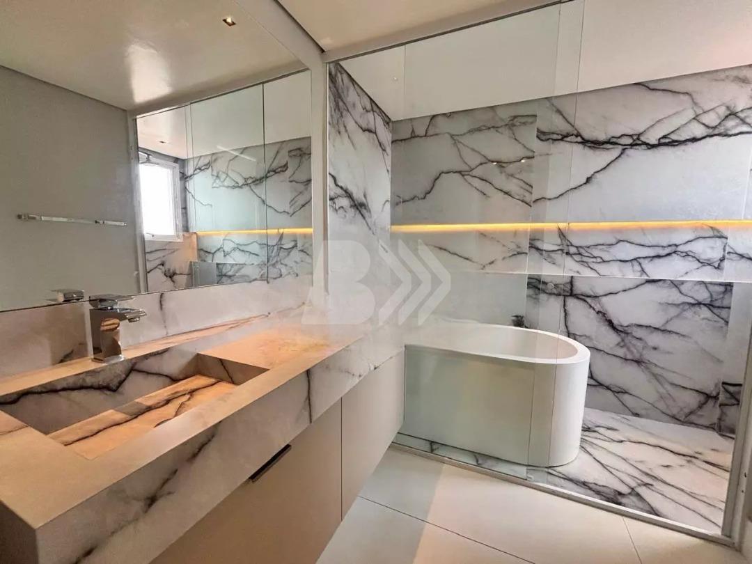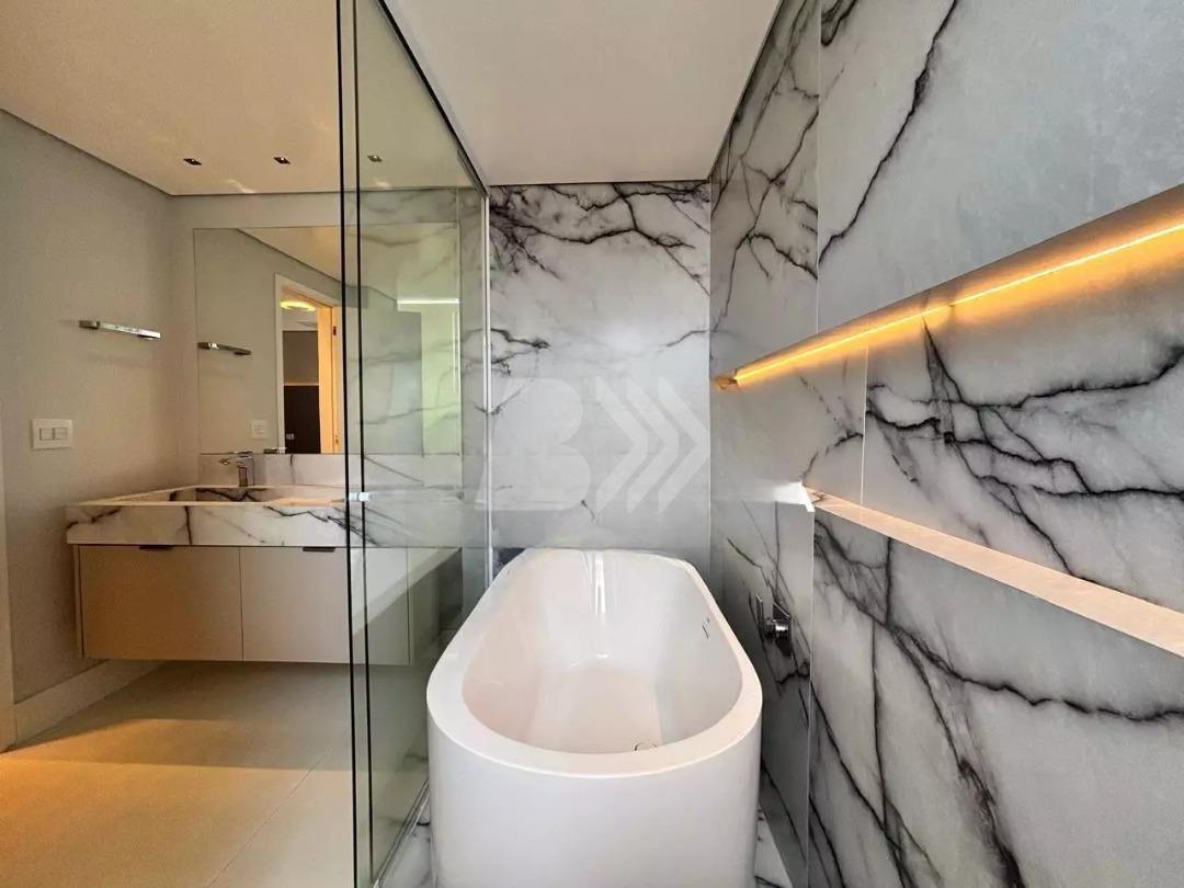 Possui pé-direito duplo, churrasqueira, lareira ecológica no home e na varanda, e sistema de som embutido em todos os ambientes.