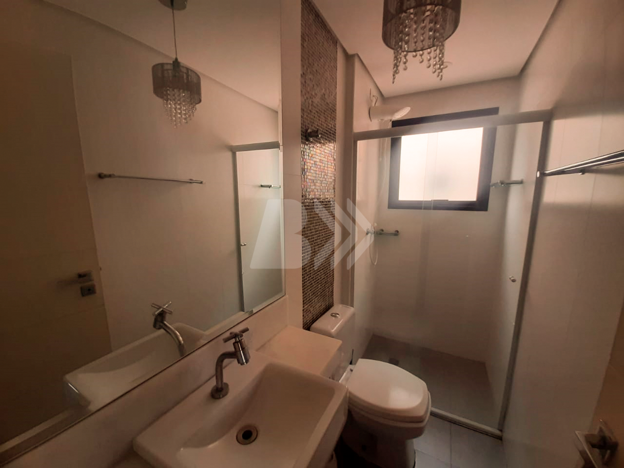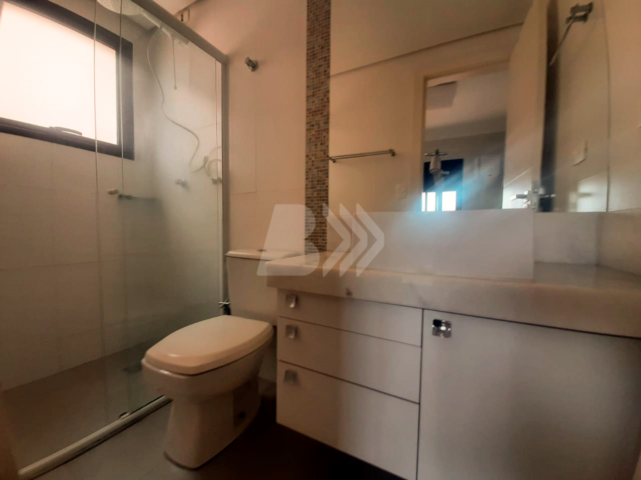Possui 1 banheiro social com gabinete e box blindex, além de 2 dormitórios com armários, sendo 1 com ar-condicionado e 1 suíte com gabinete e box blindex.
