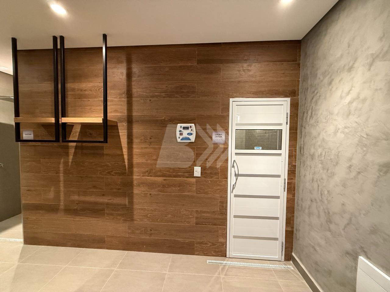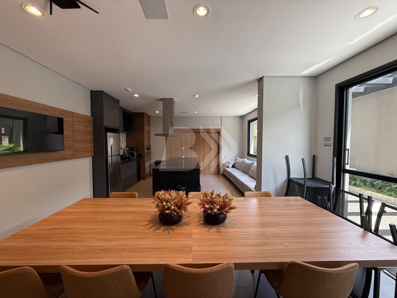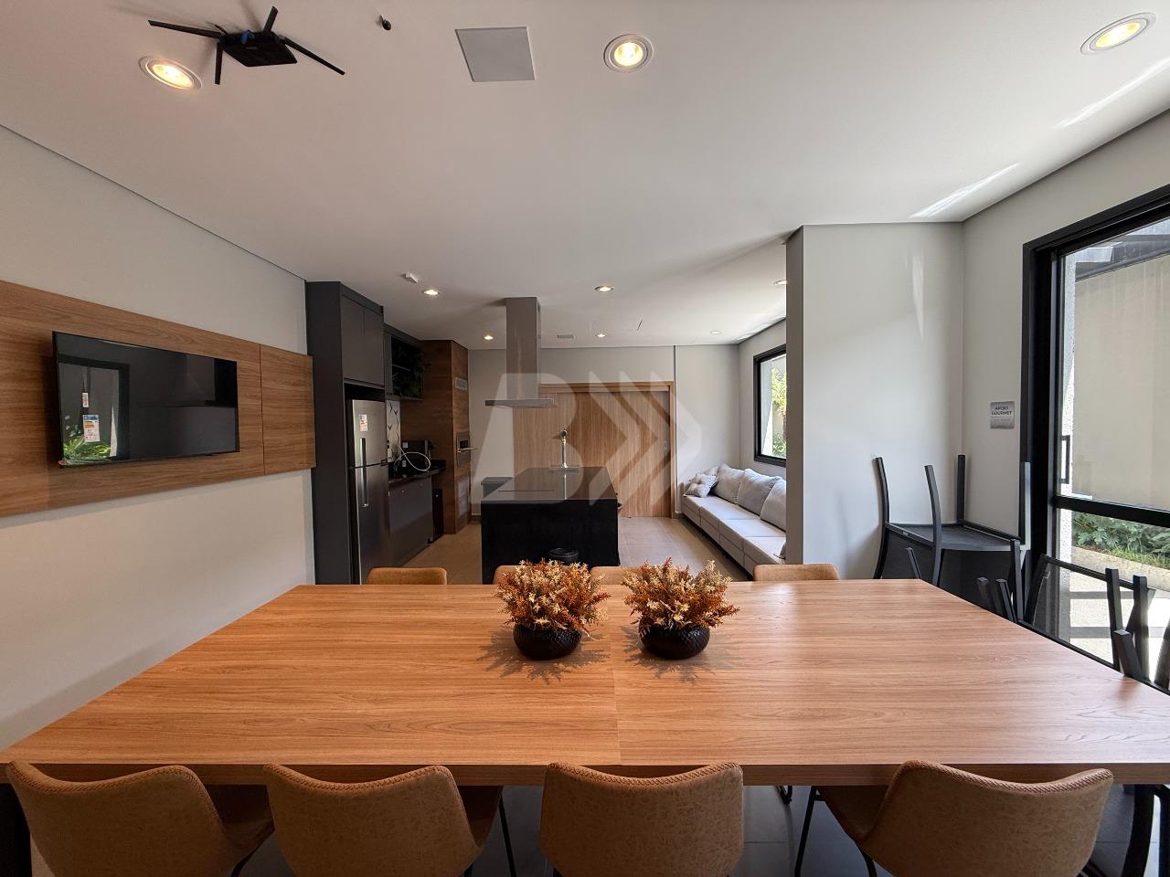 O imóvel conta com sala para 2 ambientes com painel de televisão e sacada com armário.