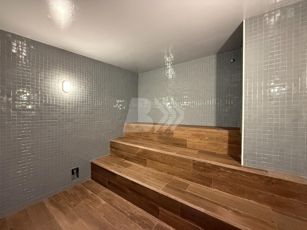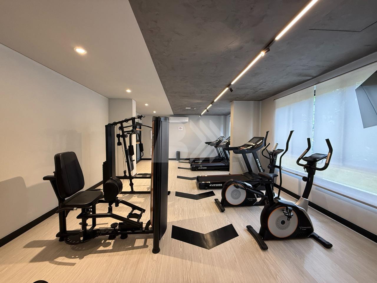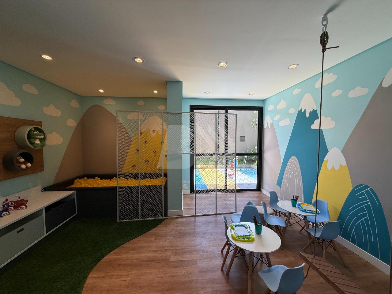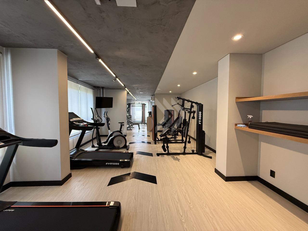 O imóvel conta com sala para 2 ambientes com painel de televisão e sacada com armário.