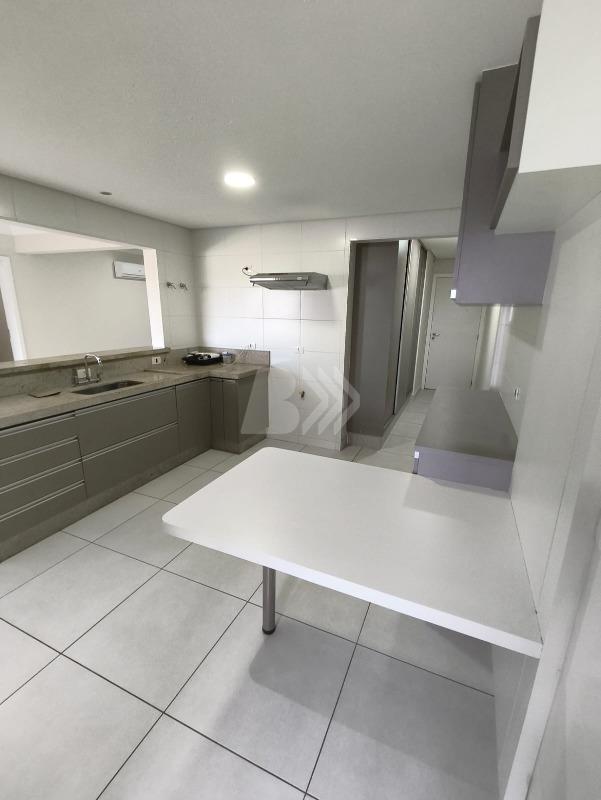 O imóvel conta com 140 m², distribuídos em: sala para 2 ambientes com painel de TV e ar-condicionado, varanda gourmet, lavabo, cozinha planejada com mesa e coifa, além de área de serviço com armários e banheiro.