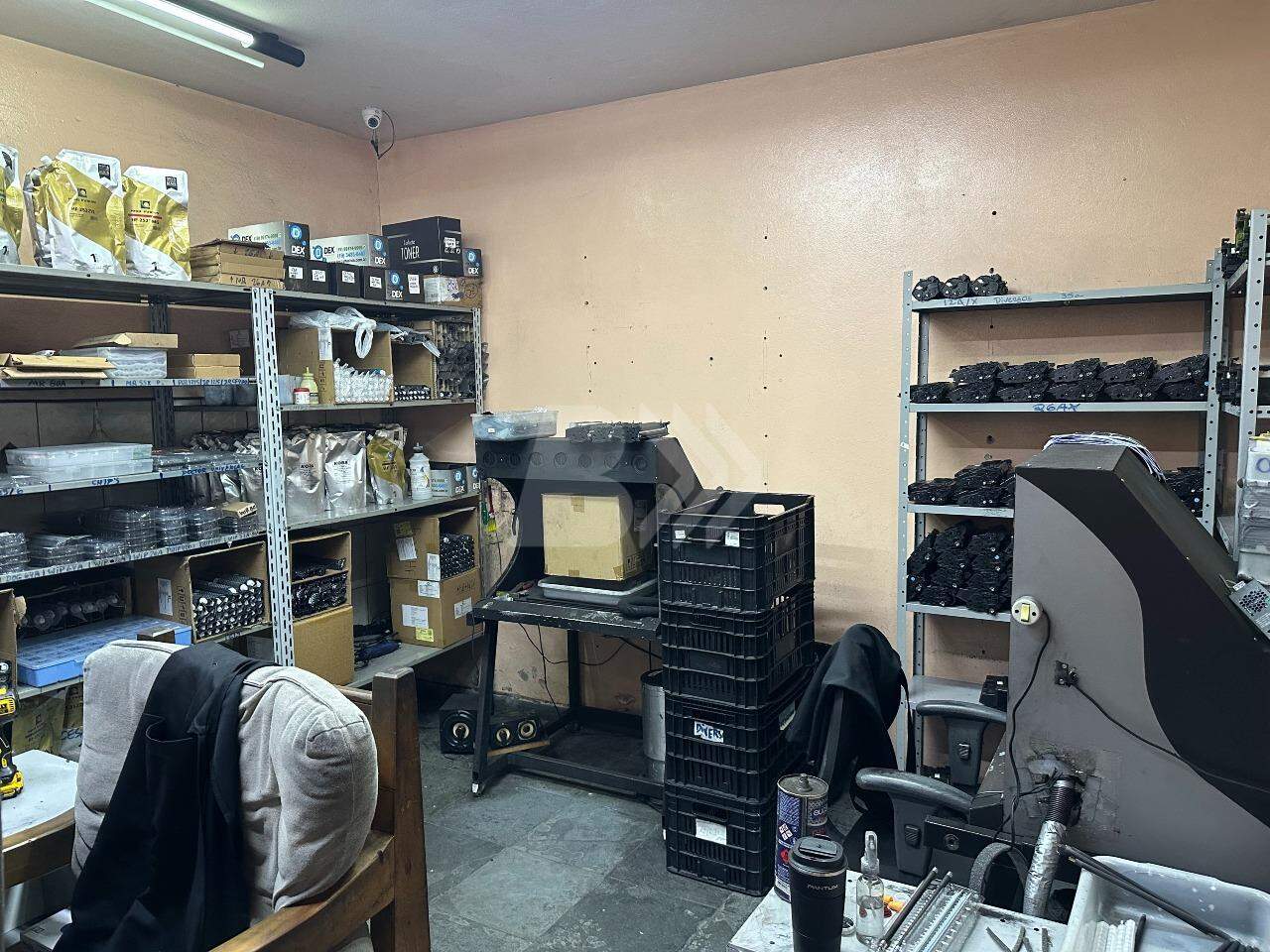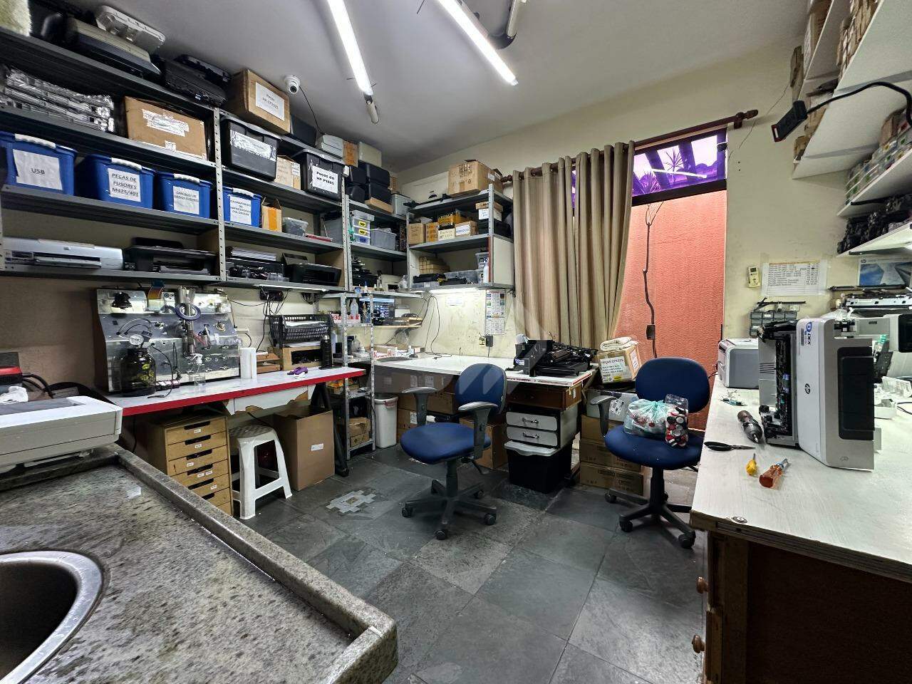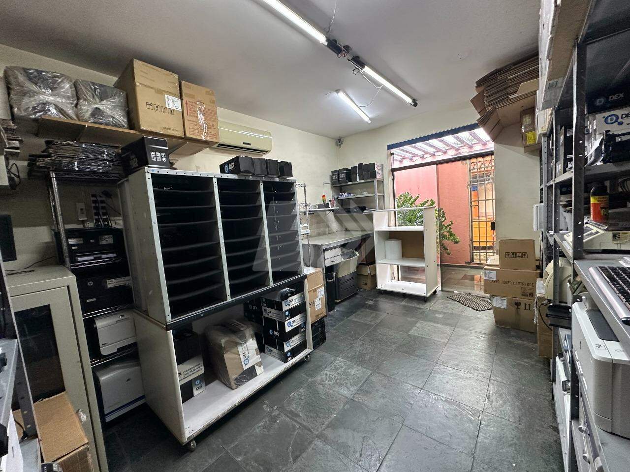O imóvel dispõe de recepção, sala de estoque, cozinha, 2 banheiros, 3 salas e lavanderia.