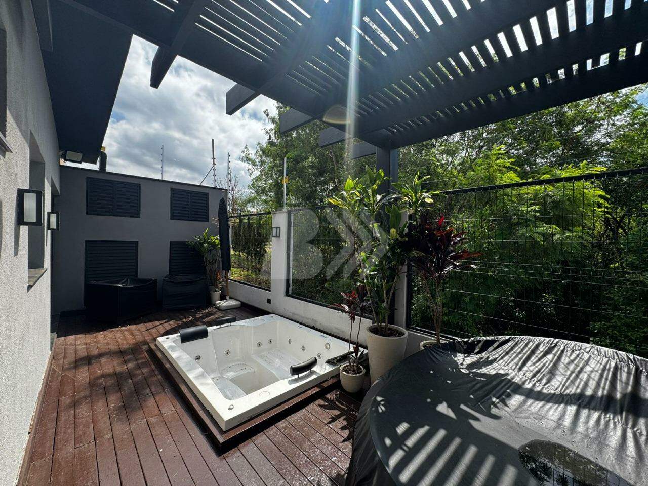 Há 2 vagas de garagem cobertas e 2 descobertas.