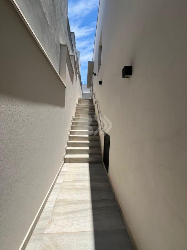 No pavimento superior, conta com 3 dormitórios, sendo 2 suítes com box, janelas automatizadas com vista interna e banheiro social.
