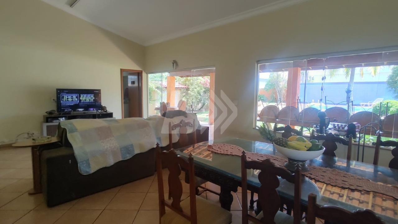 O imóvel conta com ampla sala integrada à cozinha, com vista para um belo jardim e piscina.