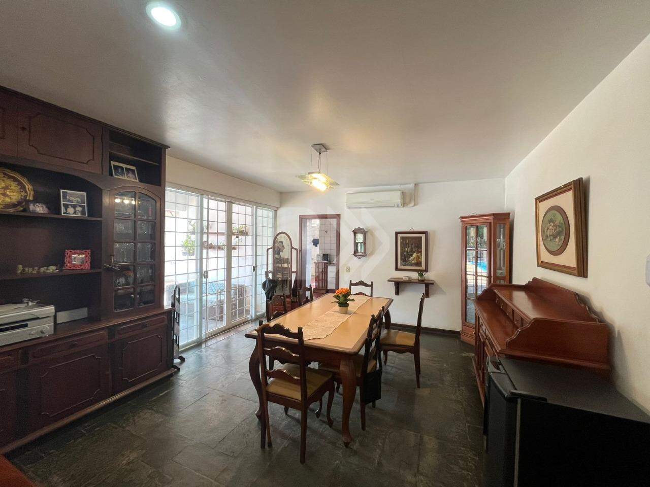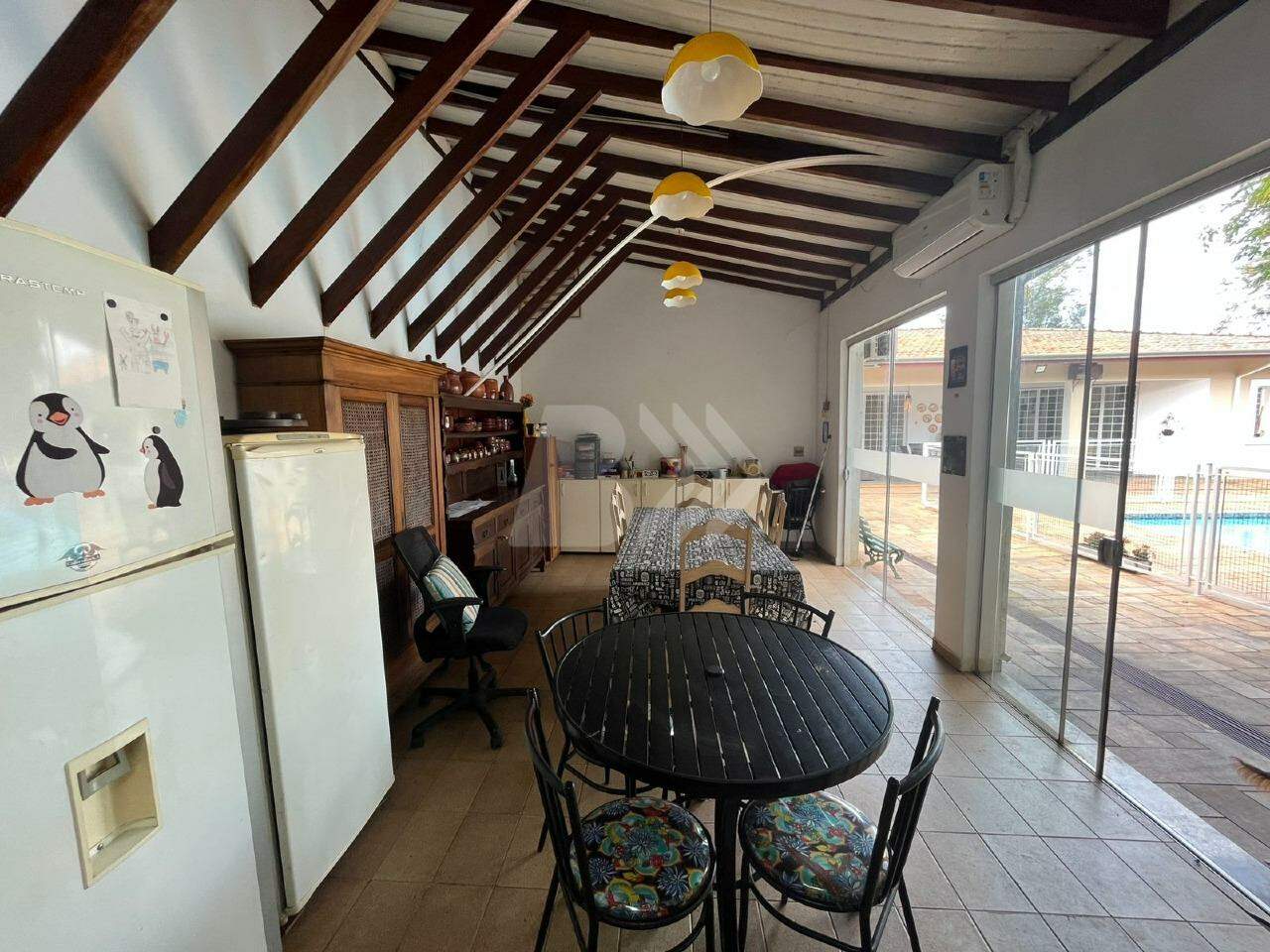 A área externa conta com quartos de despejo, canil, piscina cercada, viveiro e pomar com árvores frutíferas.