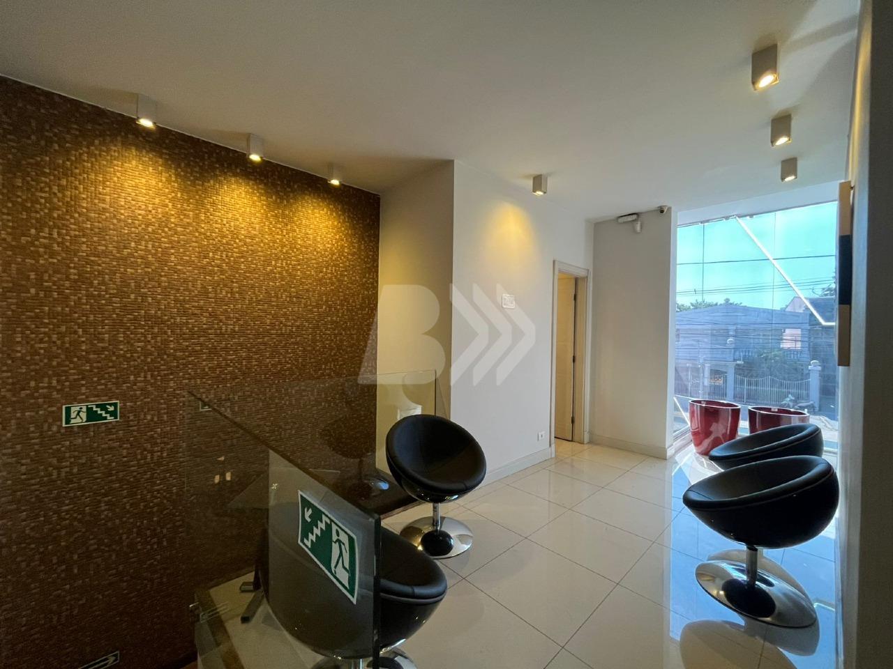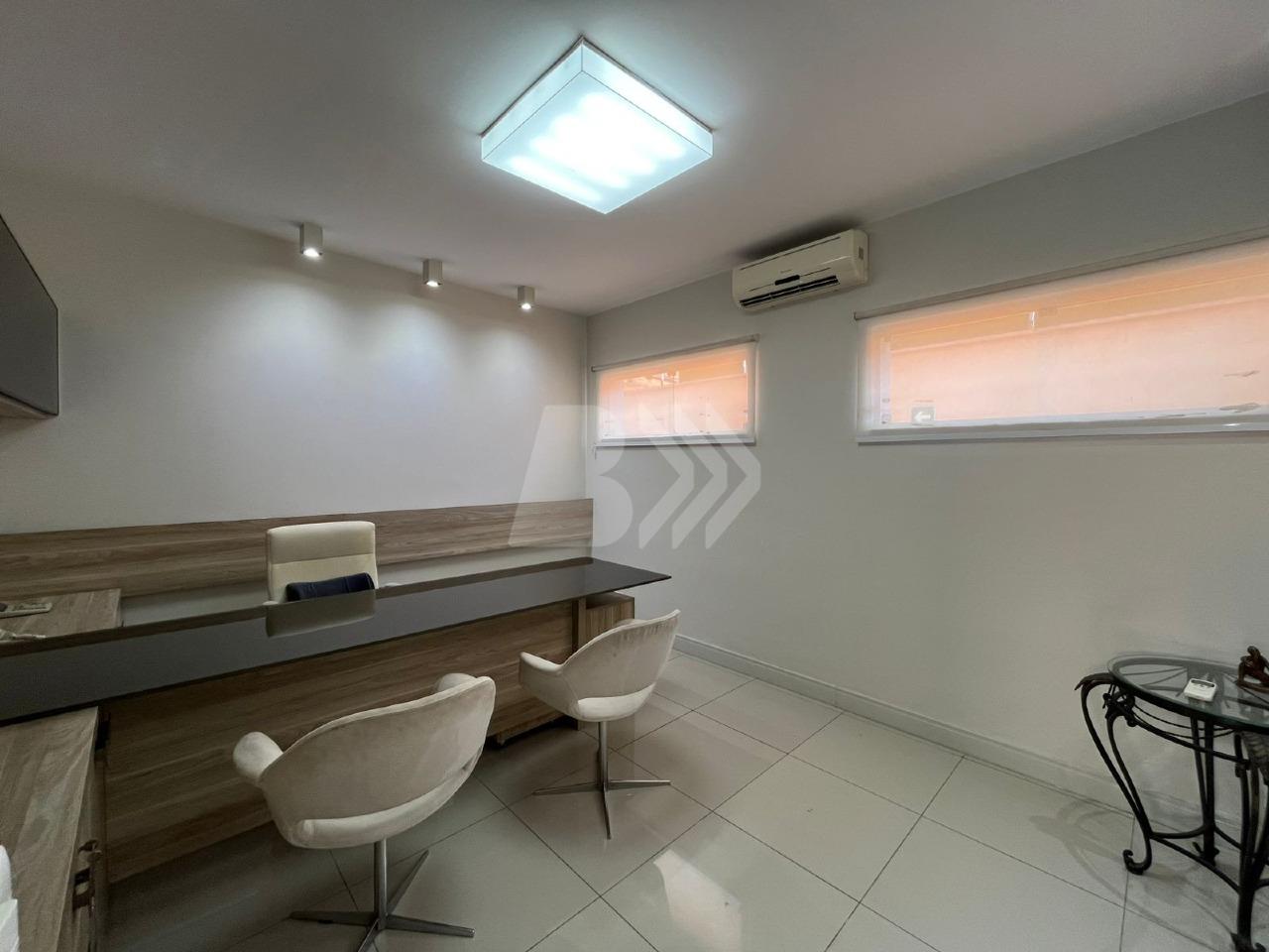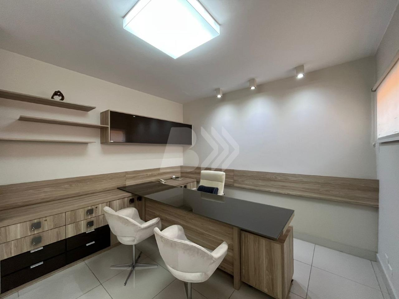 Com 350 m², o imóvel conta com 7 salas equipadas com móveis planejados, cozinha estilo americana com armários e espaço gourmet integrado.