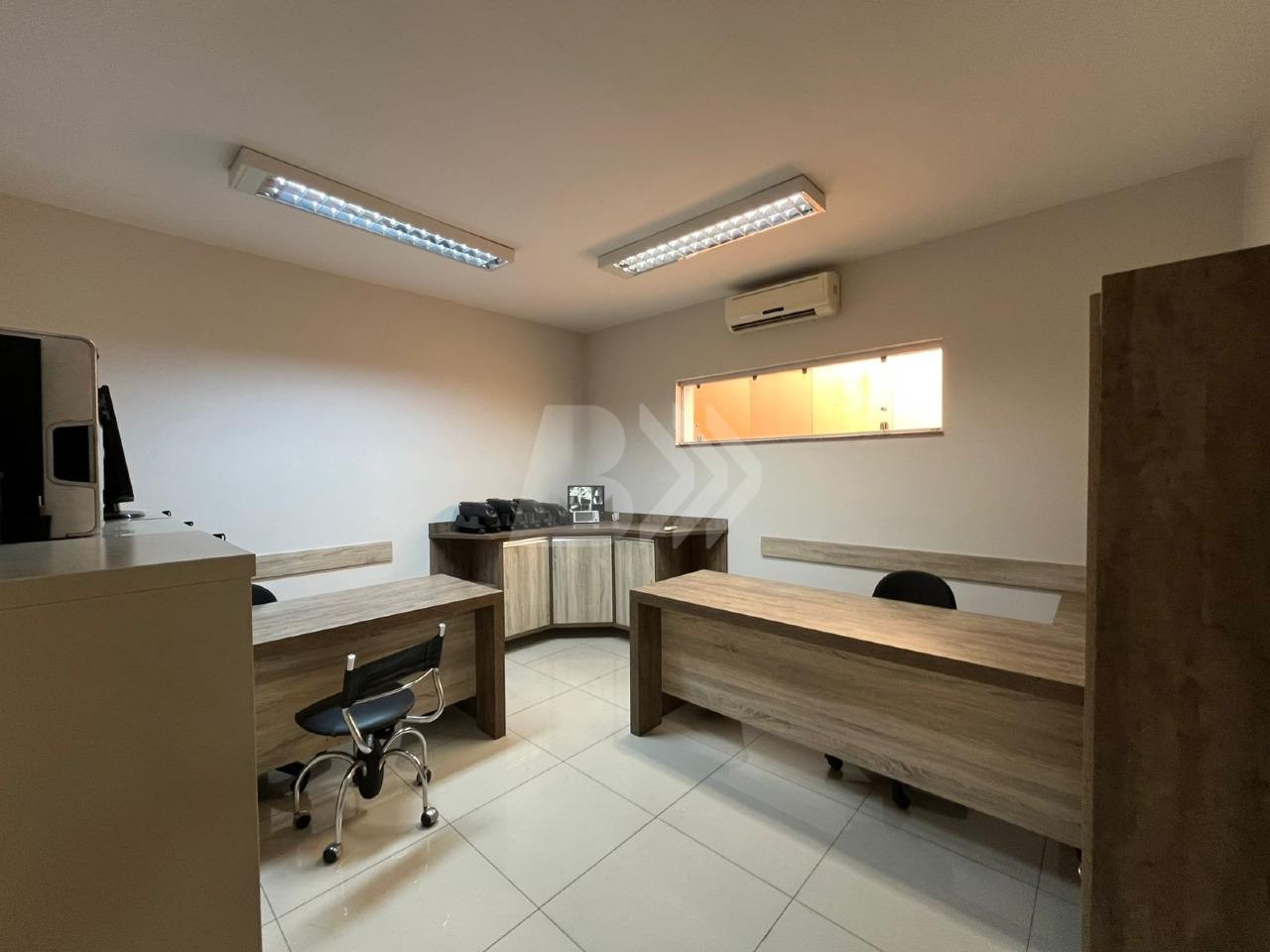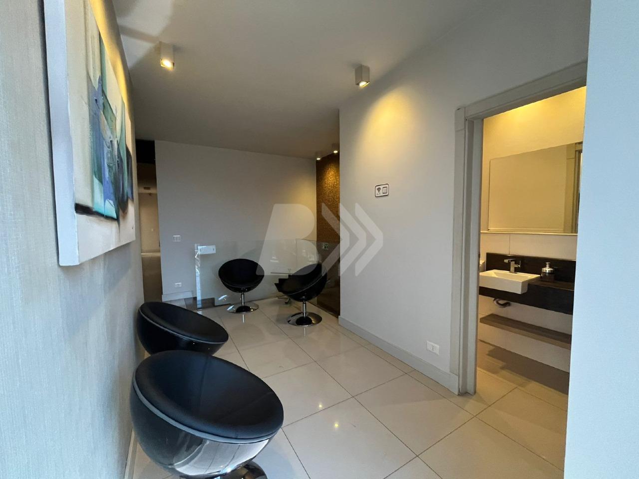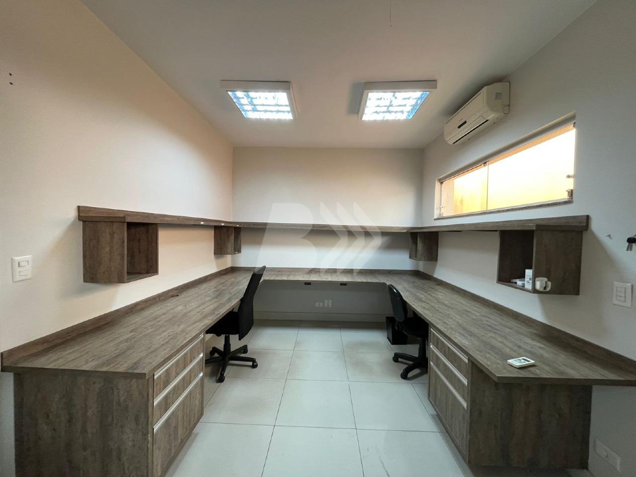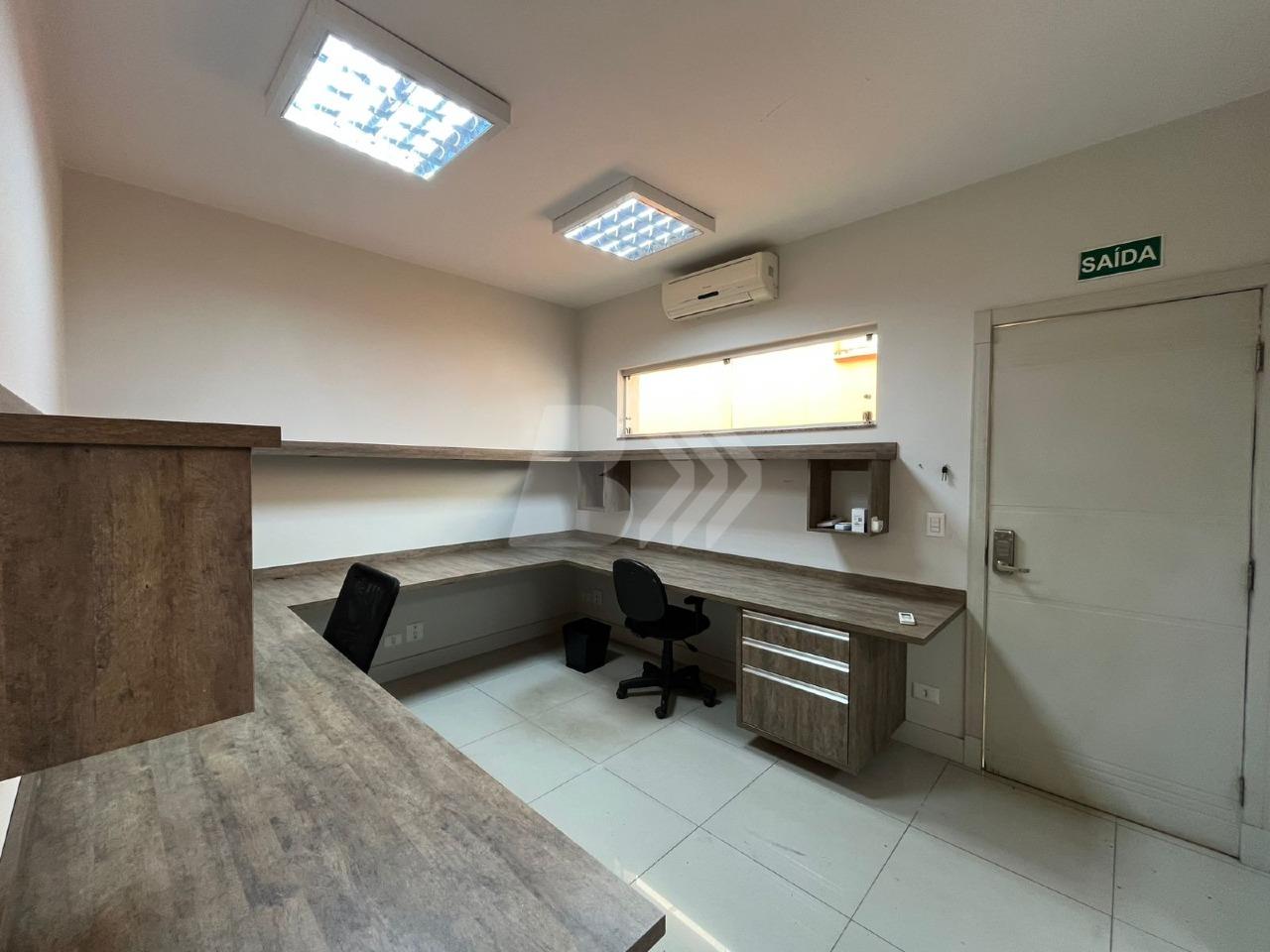 Com 350 m², o imóvel conta com 7 salas equipadas com móveis planejados, cozinha estilo americana com armários e espaço gourmet integrado.